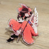 腰掛けている霊夢のアクリルスタンドです。 裏側にアクリル板を挿して2枚目の写真みたいに棚などに引っ掛けられます。 隣に置いてる当サークルのアクスタは大きさ比較として参考に。 最外寸:約105×85×54mm ※裏側のアクリル板が挿してある状態 裏側のアクリル板:50×85mm ※挿した後に飛び出ている部分 アクリル厚:3㎜ちょい